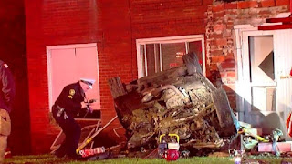 The vehicle ended up striking an apartment building. It was not stated what actually caused the death in terms of which impact or roll over.